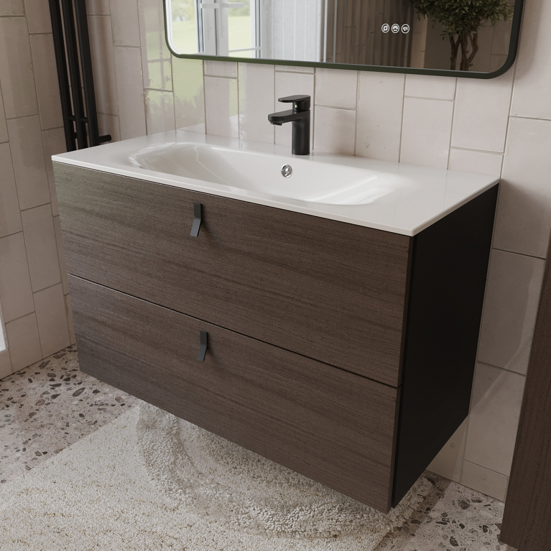 Закажите товар "Тумба с раковиной подвесная (100см) Terminus Kontur KON101002200001O, венге/графит"