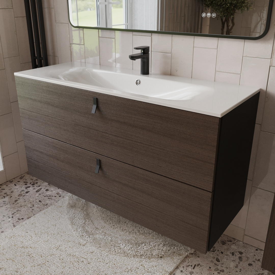 Закажите товар "Тумба с раковиной подвесная (120см) Terminus Kontur KON101202200001O, венге/графит"