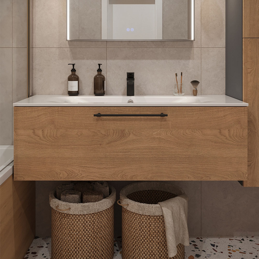 Закажите товар "Тумба с раковиной подвесная (120см) Terminus Venta VEN101201300001O, шпон/дуб"