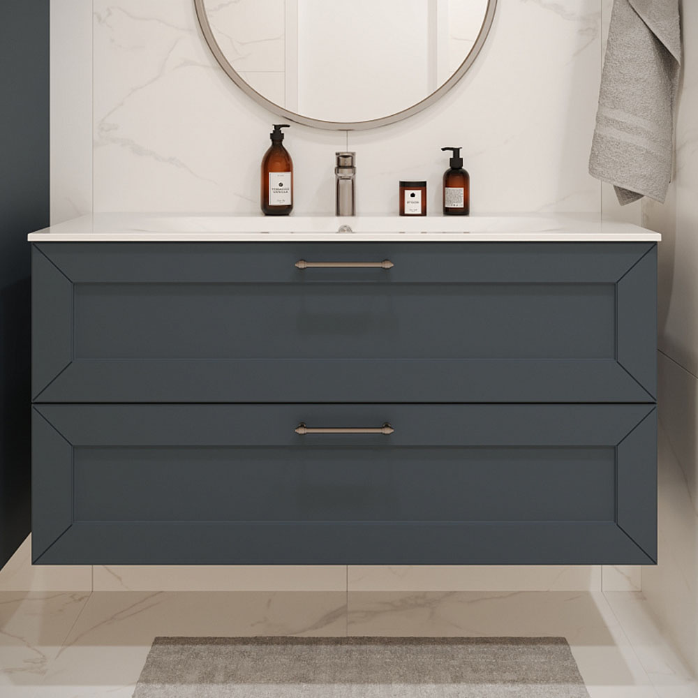 Закажите товар "Тумба с раковиной подвесная (120см) Terminus Victoria VIC101202703101O, серый шёлк"