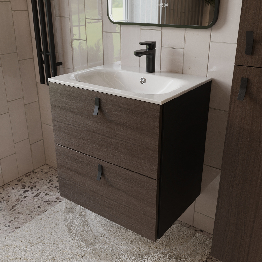 Закажите товар "Тумба с раковиной подвесная (60см) Terminus Kontur KON10602200001O, венге/графит"