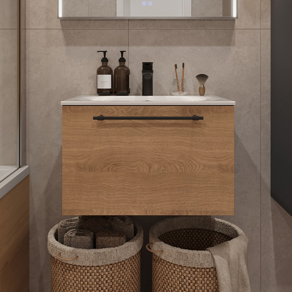 Закажите товар "Тумба с раковиной подвесная (60см) Terminus Venta VEN10601300001O, шпон/дуб"