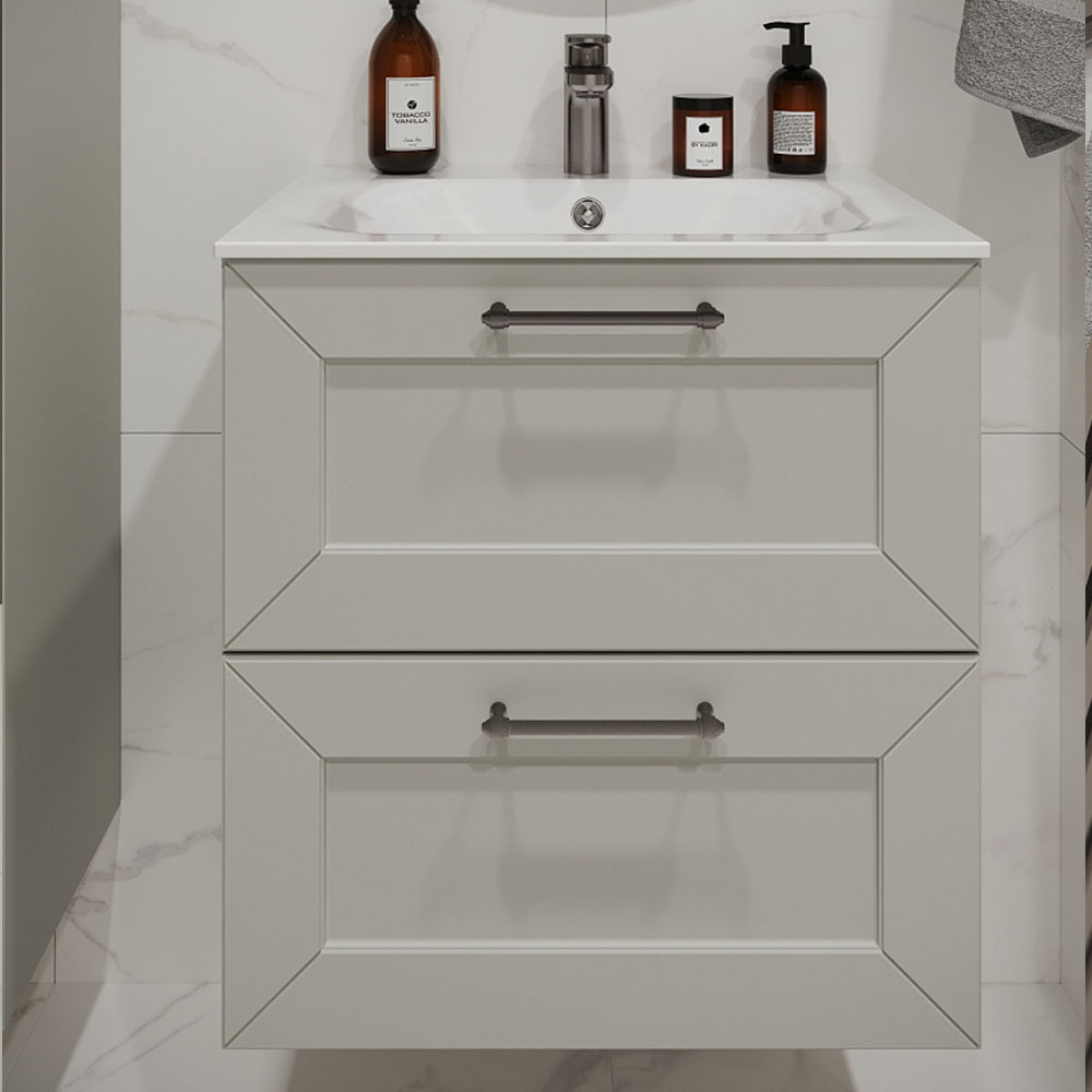 Тумба с раковиной подвесная (60см) Terminus Victoria VIC10602900301O, белый. Раковина из литьевого мрамора в комплекте: диаметр отверстия под смеситель: 35, диаметр отверстия слива: 45 мм, диаметр отверстия перелива: 30 мм. Ширина тумбы: 600 мм. Тип фасада: Филенчатая фрезеровка . Материал ящиков: ДСП. Количество ящиков: 2. Сифон и данный клапан приобретаются отдельно и в комплект поставки не входят. В тумбе установлена фурнитура Firmax. Система открывания: Металлические ручки . Технология направляющих: Soft-Close, полного выдвижения, с доводчиком. Тумба поставляется в сборе. Гарантийный срок 2 года.