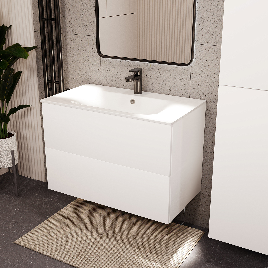 Закажите товар "Тумба с раковиной подвесная (80см) Terminus Aurora AUR10802900301O, белый"