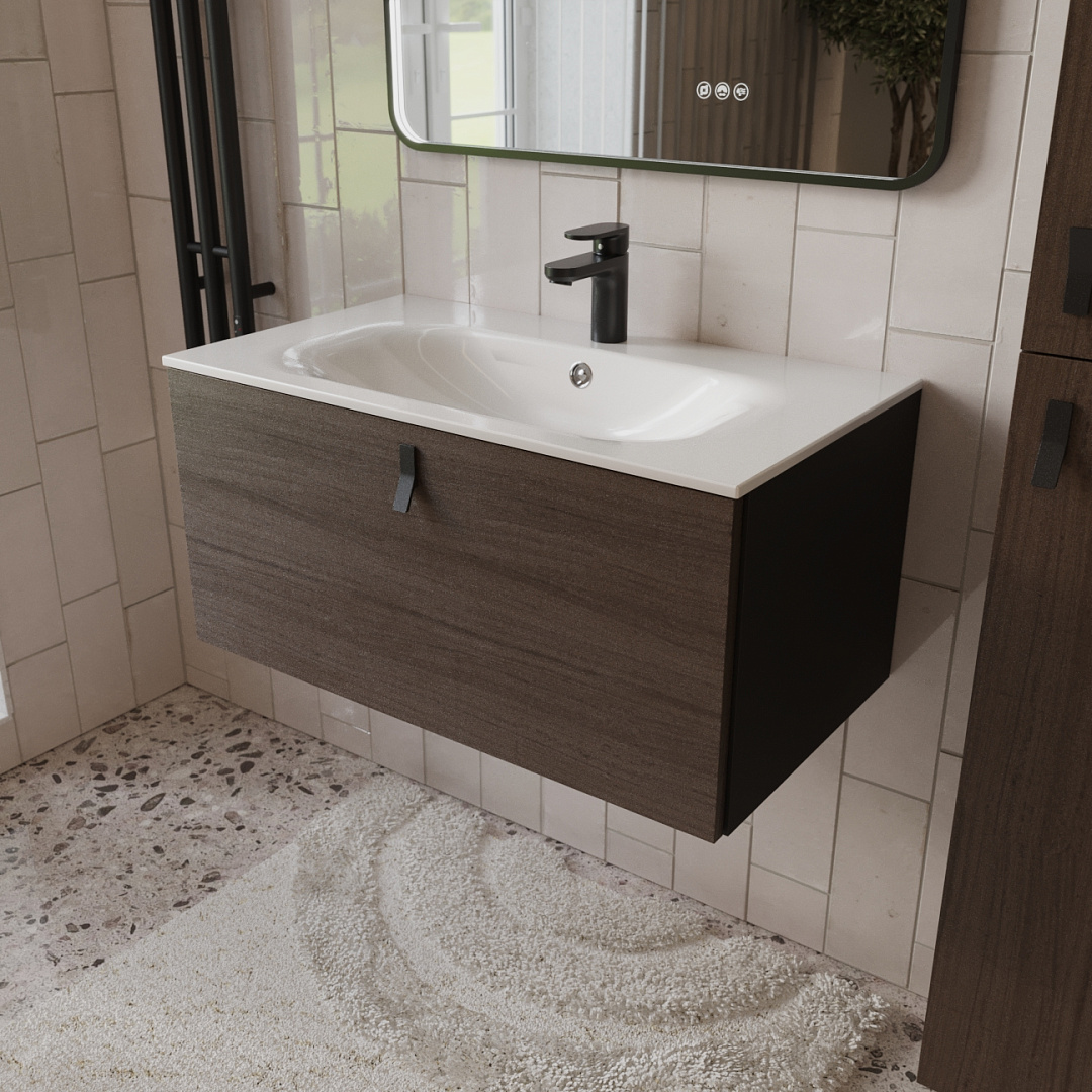 Закажите товар "Тумба с раковиной подвесная (80см) Terminus Kontur KON10801200001O, венге/графит"