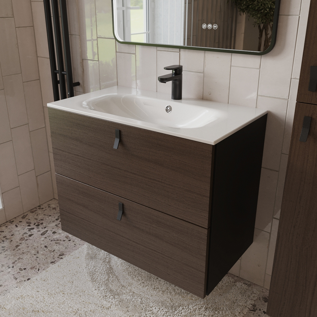 Закажите товар "Тумба с раковиной подвесная (80см) Terminus Kontur KON10802200001O, венге/графит"