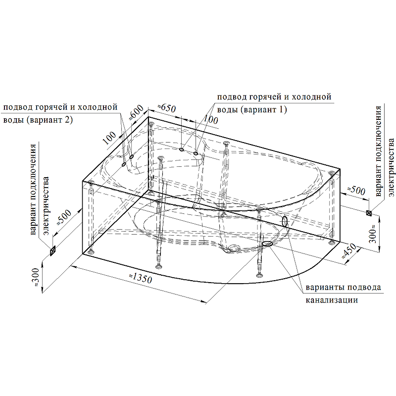| Оснащение | С панелью (экраном), с каркасом, со сливом-переливом |
