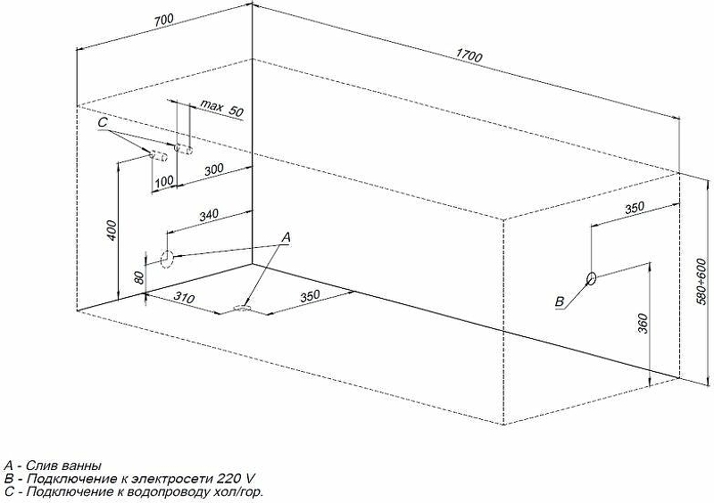 Закажите товар "Акриловая ванна Aquanet Roma 170×70 205375 без гидромассажа"