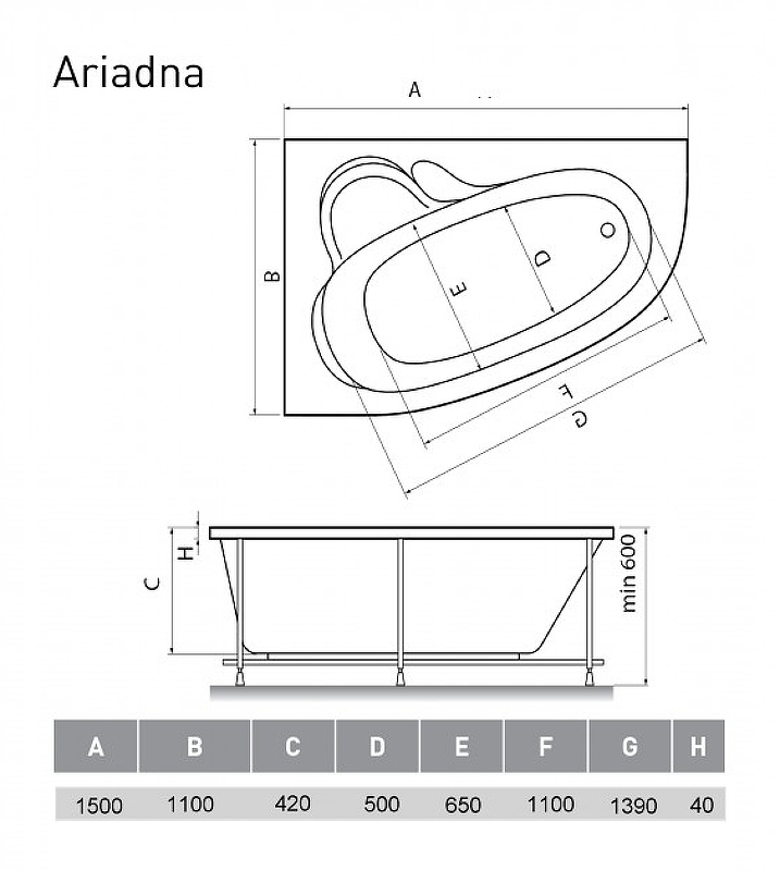 Закажите товар "Акриловая ванна Relisan Ariadna 150×110 L Гл000001636 без гидромассажа"