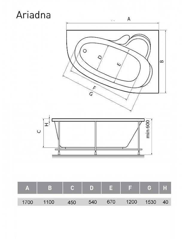 Закажите товар "Акриловая ванна Relisan Ariadna 170×110 R Гл000000538 без гидромассажа"