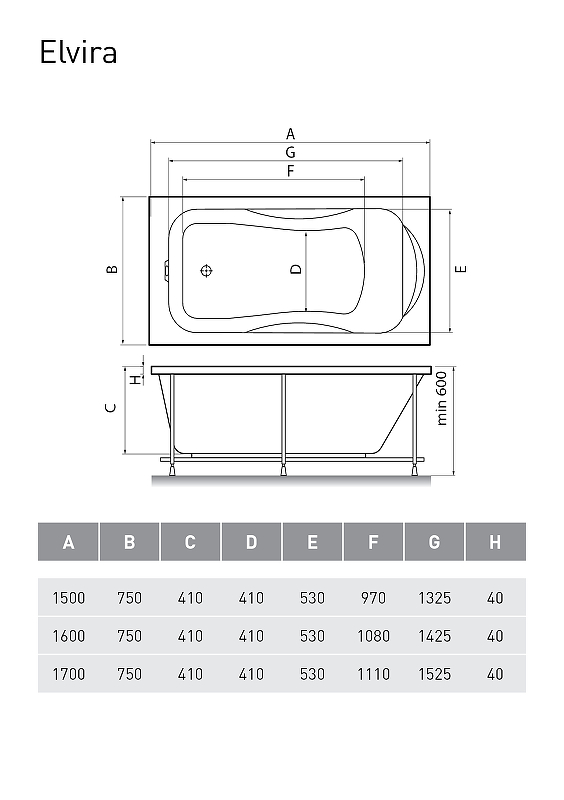 Закажите товар "Акриловая ванна Relisan Elvira 150×75 Гл000000978 без гидромассажа"