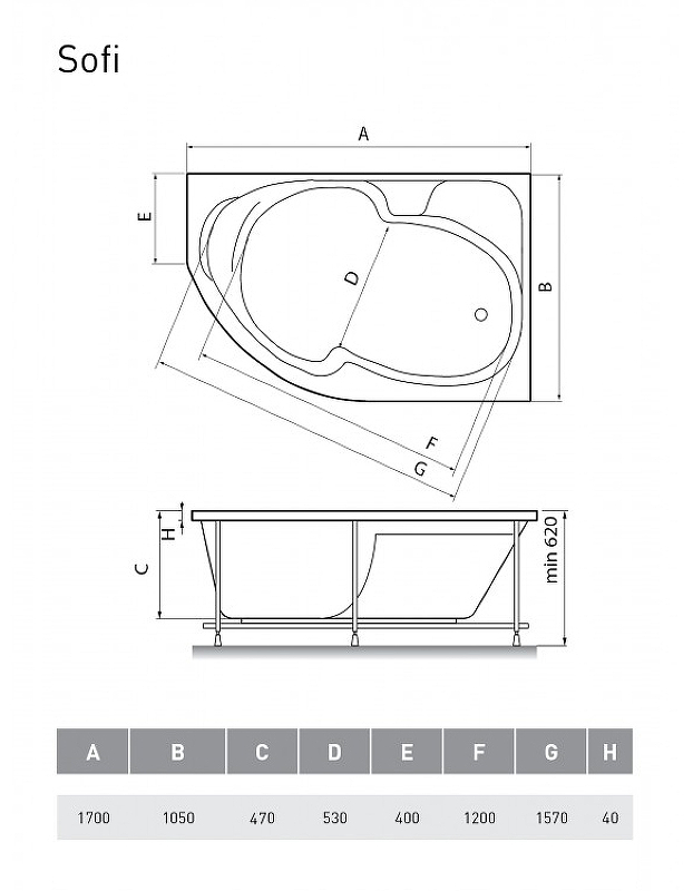 Закажите товар "Акриловая ванна Relisan Sofi 170х105 R Гл000009445 без гидромассажа"