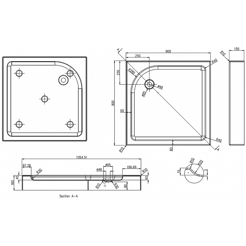 В комплекте поставки: поддон для душа, каркас с ножками, сифон.
