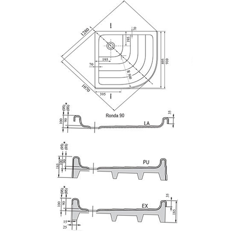 Акриловый поддон для душа Ravak Kaskada/Ronda-90х90 PU A207001120.