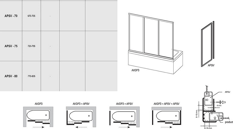 Закажите товар "Боковая стенка для шторки на ванну Ravak Supernova APSV-70 95010U02Z1 профиль Сатин стекло Transparent"