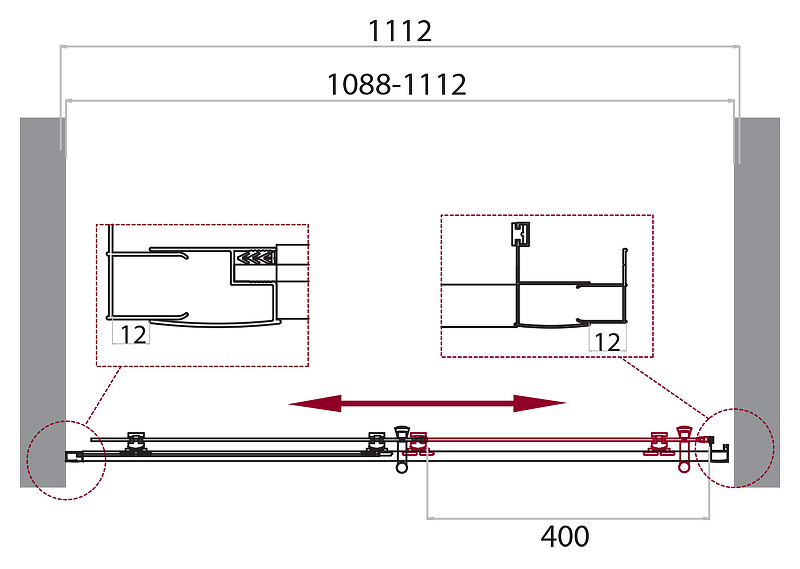 Душевая дверь BelBagno Uno 110 UNO-195-BF-1-110-C-NERO.