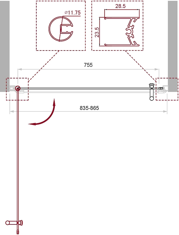 В комплекте поставки: душевая дверь: стекла с фурнитурой и профилями.