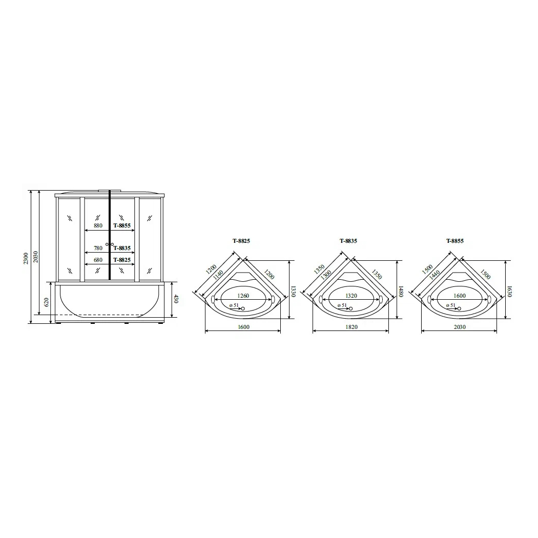 | Комплектация | Душевая кабина, излив, душевой гарнитур, полки, смеситель-термостат, сифон, экран. |