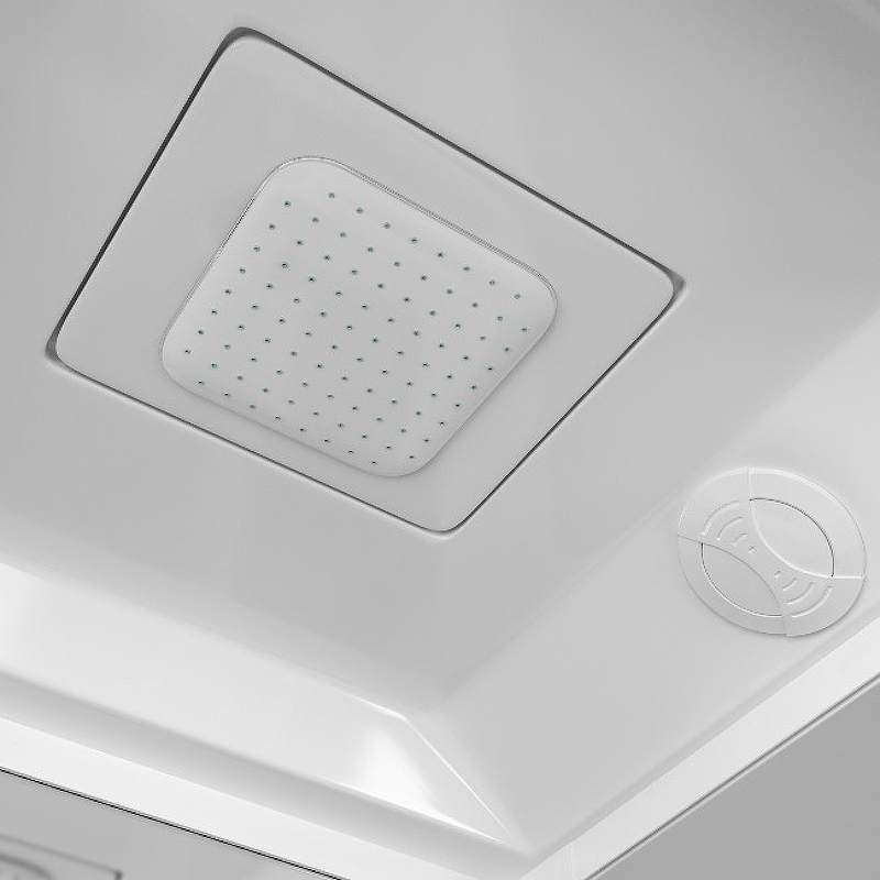 | Оснащение | С зеркалом , ручной душ, подсветка, верхний душ, радио, полка |