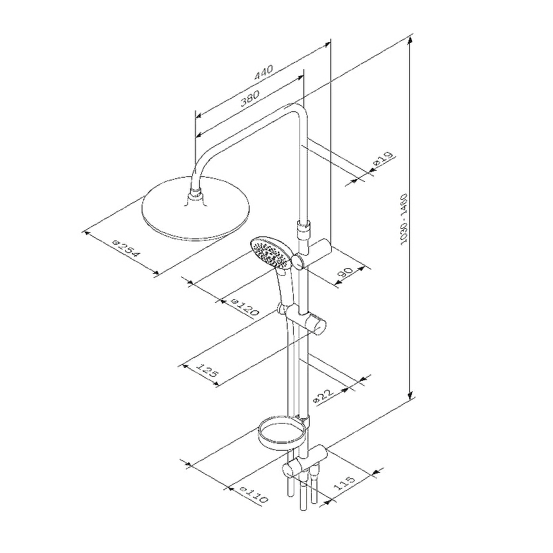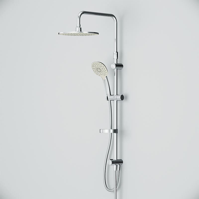 Регулируемый в трех плоскостях держатель ручного душа, шаровый шарнир в держателе верхнего душа позволяет регулировать угол наклона, шарнирное соединение защищает душевой шланг от перекручивания.