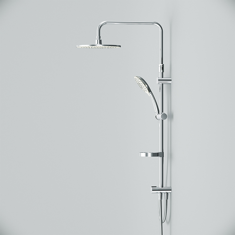 Тотальный дизайн в действии: все детали душевой системы - от пропорций ручного и верхнего душей до рисунка расположения форсунок на лейках - подчинены единой дизайн-концепции в ультра-модном стиле Dynamic Organic.