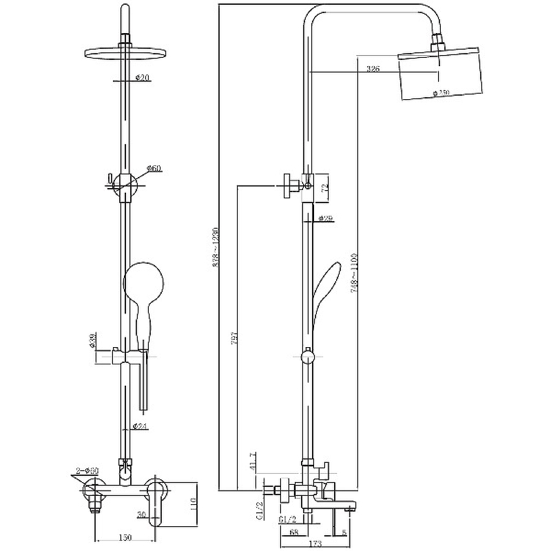 Душевая система со смесителем Aquanet Passion S3 AF300-72-S-B 261839.