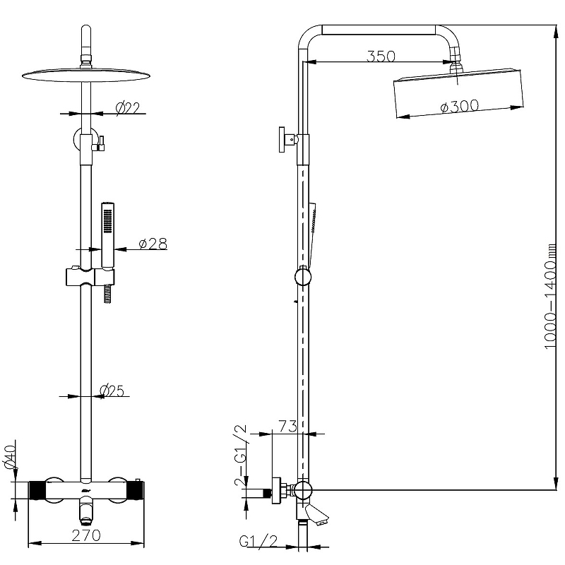 Душевая система Boheme Uno 468-T-MW с термостатом.