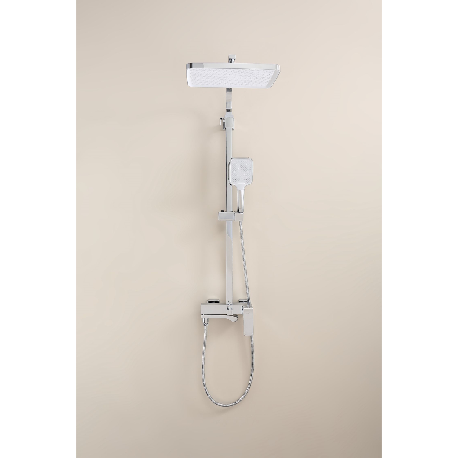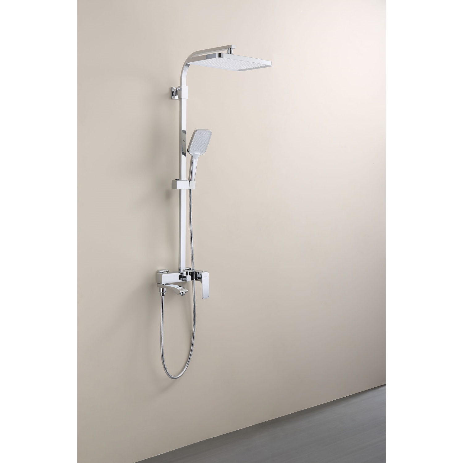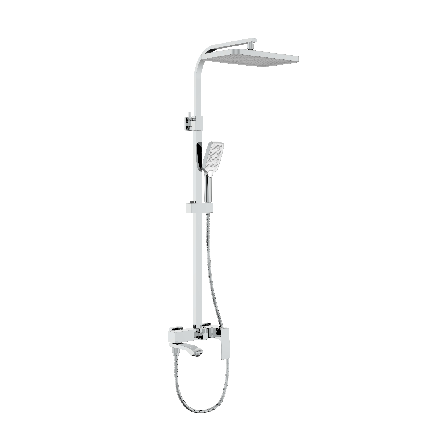 | Комплектация | Верхний душ (душевая штанга) с держателем лейки, ручной душ, смеситель, шланг |