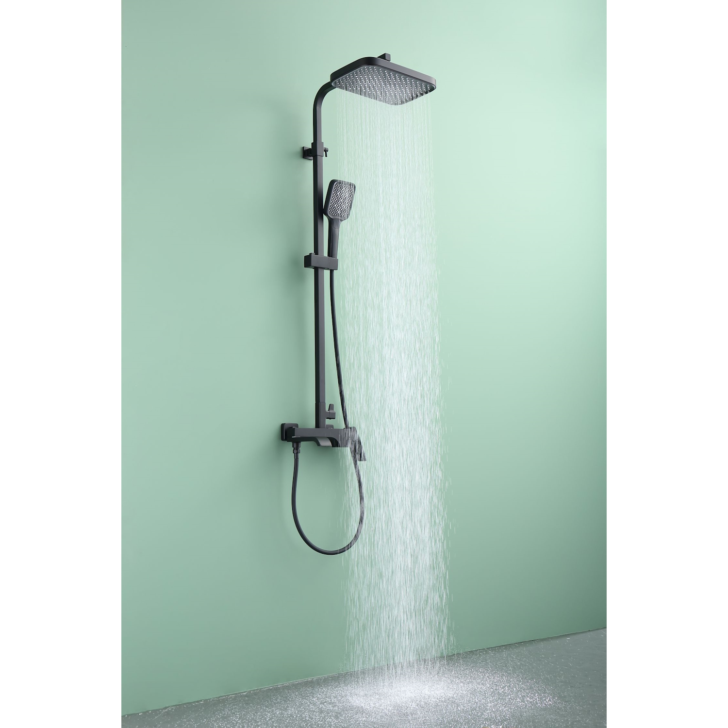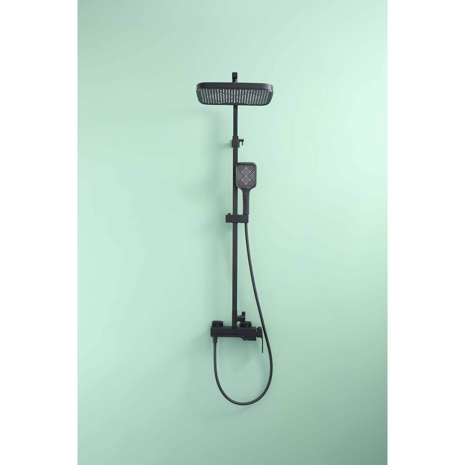 Душевая система Raglo R02.24.06. Цвет: черный. Материал: латунь. Управление: однорычажное. Механизм: керамический картридж. Излив: поворотный. Аэратор. Тип излива: каскадный. Регулируемая по высоте душевая штанга: 1082-1650 мм. Форма верхнего душа: прямоугольная. Размер верхнего душа (ШхД): 315х208 мм. Регулируемый по высоте и наклону держатель ручного душа. Форма ручного душа: прямоугольная. Количество режимов струи ручного душа: 3. Отверстия для монтажа: 3. Стандарт подводки: G 1/2. Монтаж: на стену. Керамический картридж 35мм - R500.35.01. Переключатель с керамическими пластинами (угол поворота – 90°) - R501.526. Переключатель в изливе - R501.527. Аэратор - R540.11.06.   Душевой шланг 1.5м - R403.15.06.