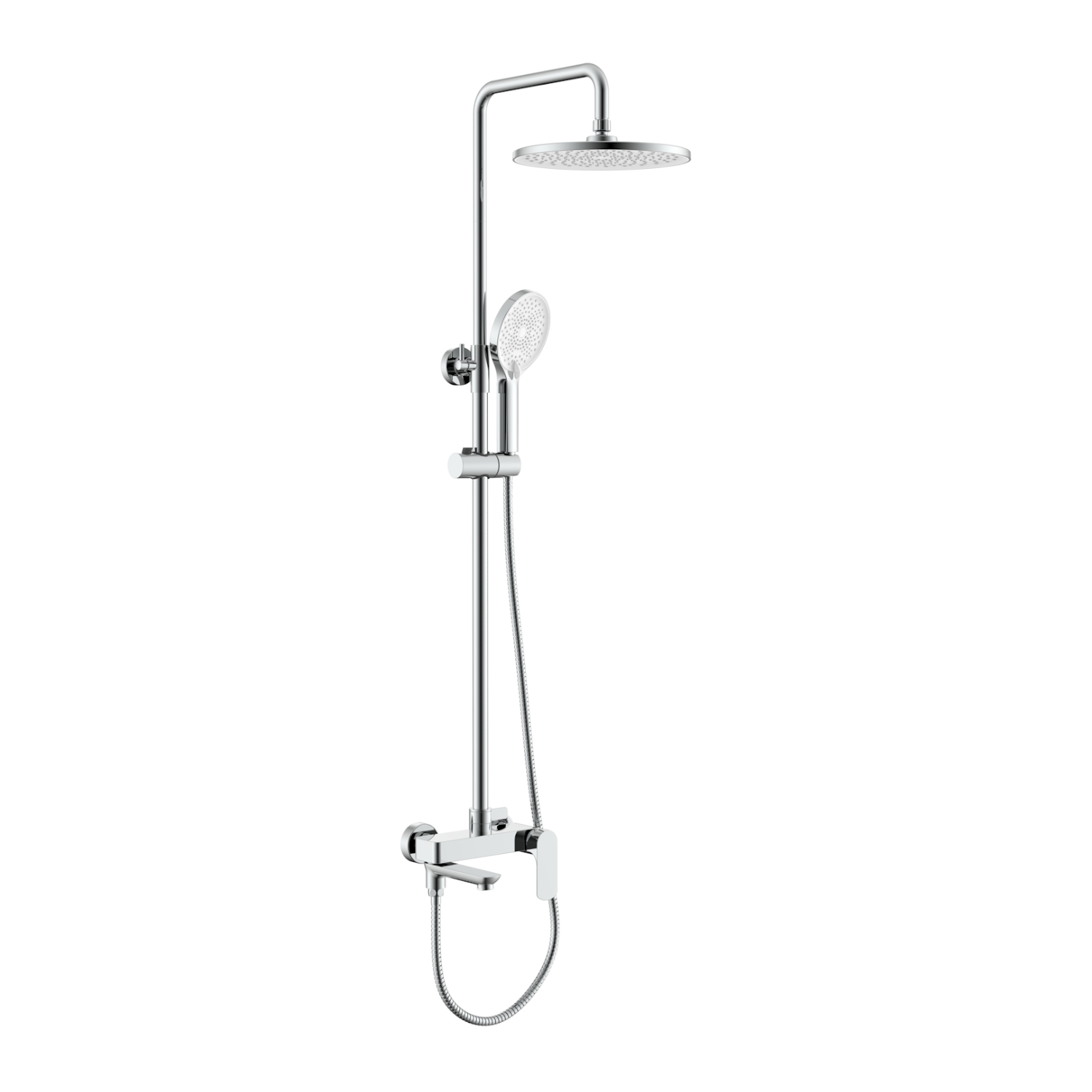 | Комплектация | Верхний душ (душевая штанга) с держателем лейки, ручной душ, смеситель, шланг |