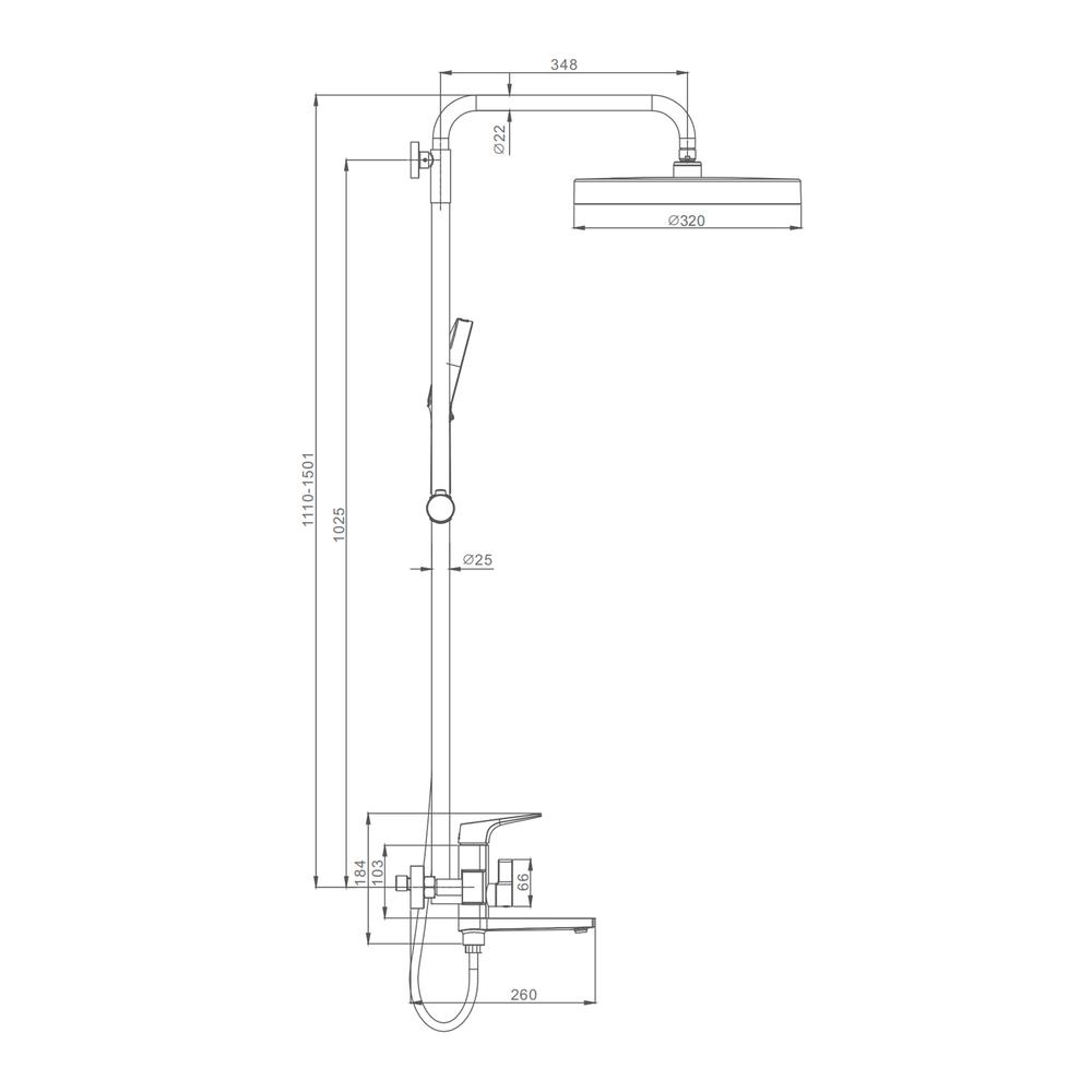 | Комплектация | Верхний душ, душевая штанга с держателем лейки, ручной душ, смеситель, шланг. |