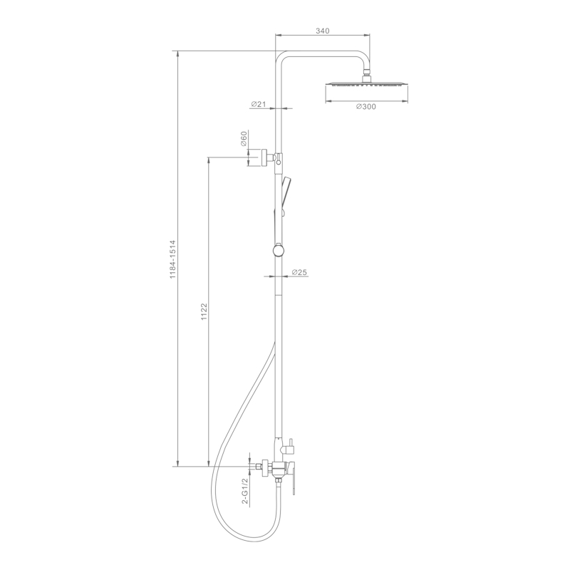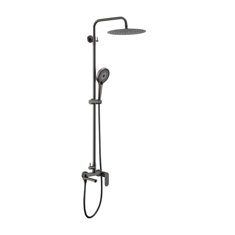 | Комплектация | Верхний душ (душевая штанга) с держателем лейки, ручной душ, смеситель, шланг |