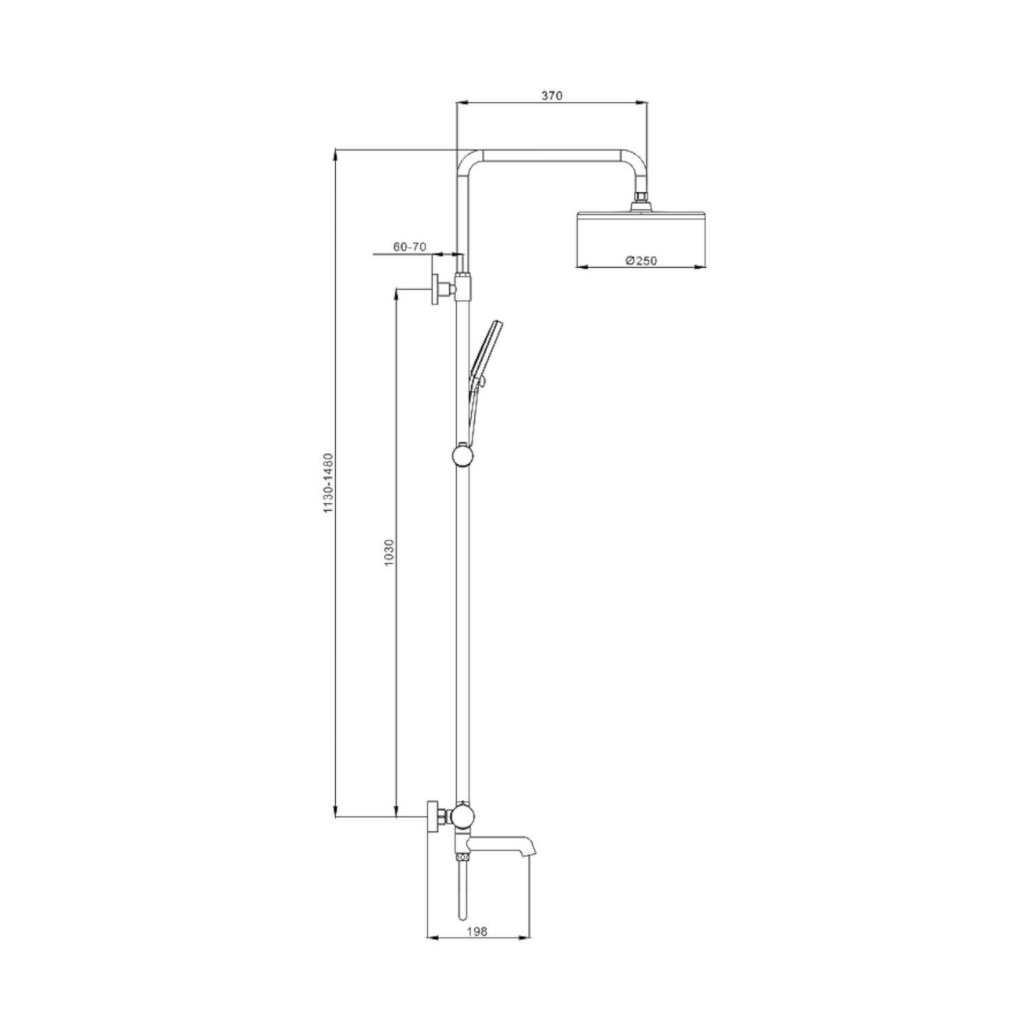Верхний душ (душевая штанга) с держателем лейки, ручной душ, смеситель, шланг