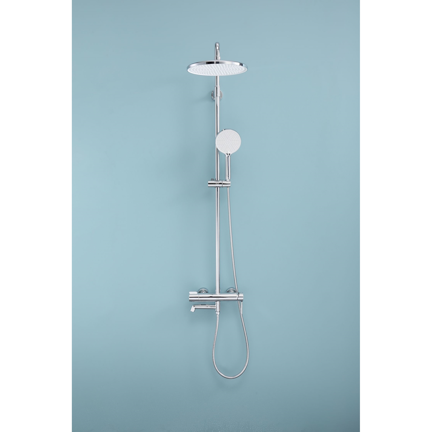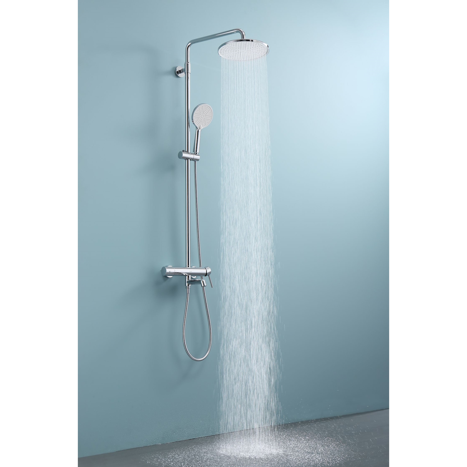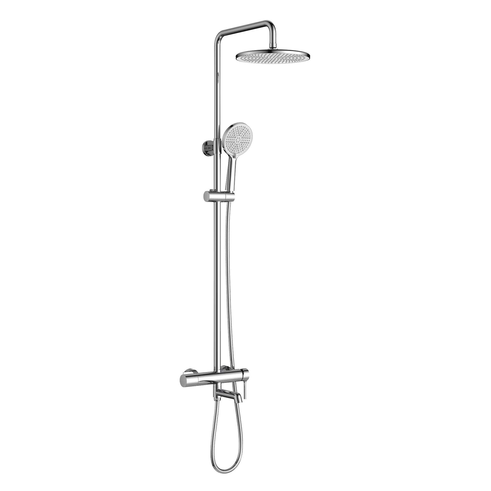 | Комплектация | Верхний душ (душевая штанга) с держателем лейки, ручной душ, смеситель, шланг |