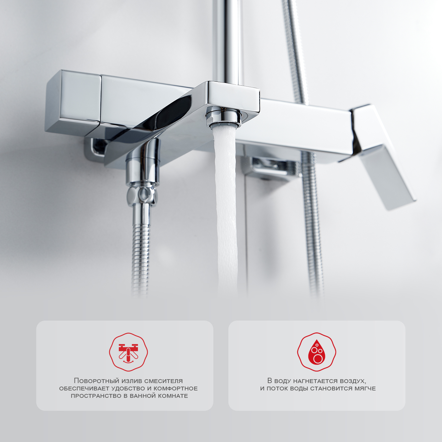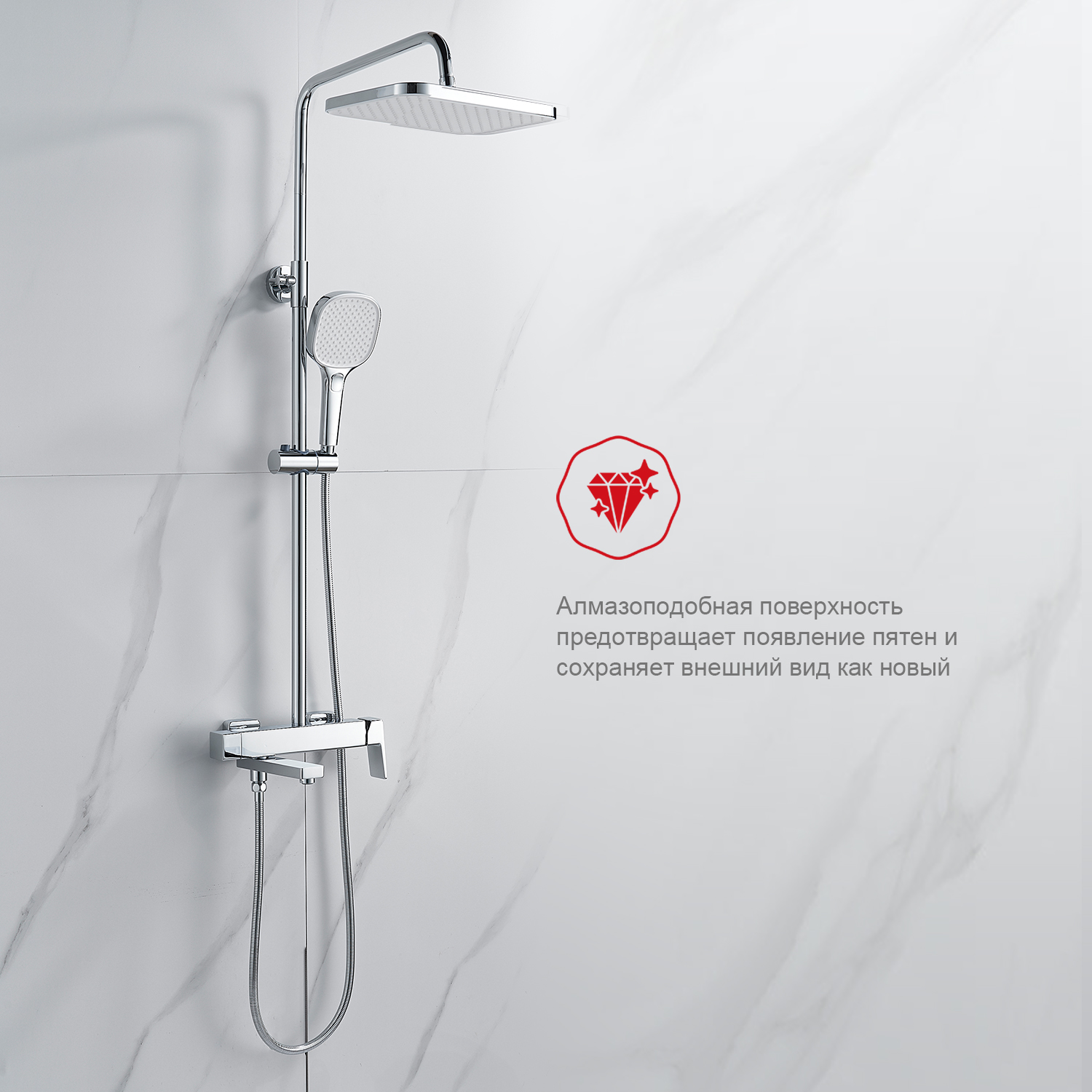 Верхний душ (душевая штанга) с держателем лейки, ручной душ, смеситель, шланг