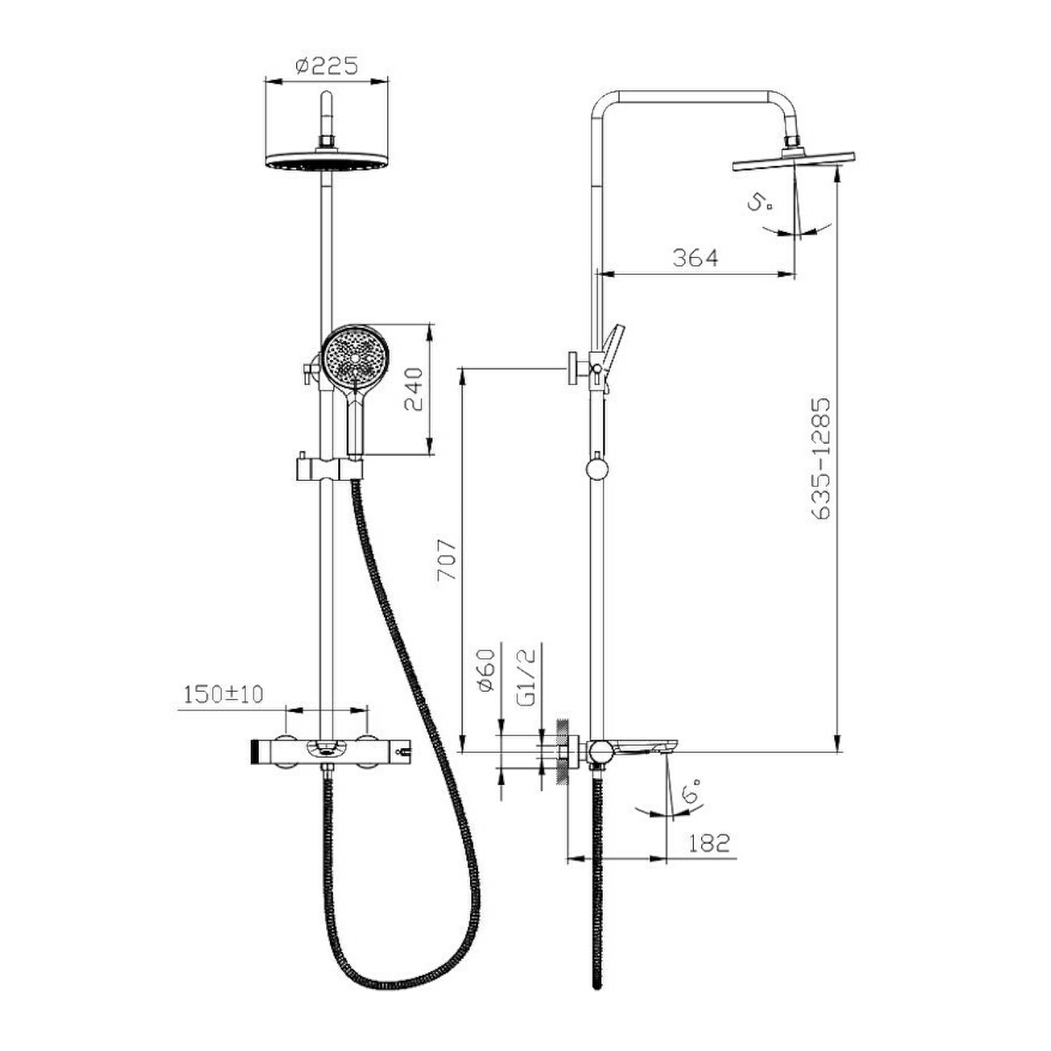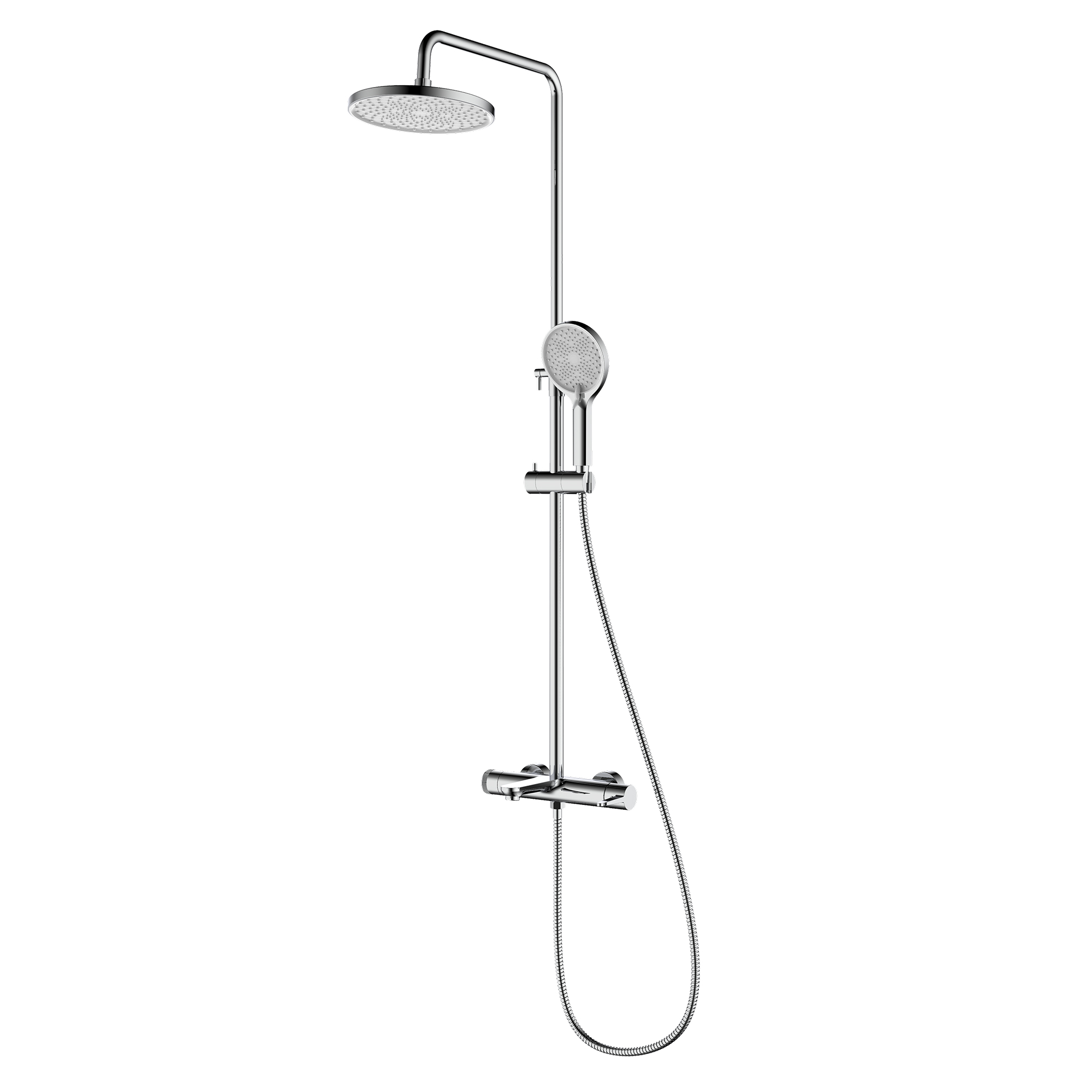 | Комплектация | Верхний душ (душевая штанга) с держателем лейки, ручной душ, смеситель, шланг |