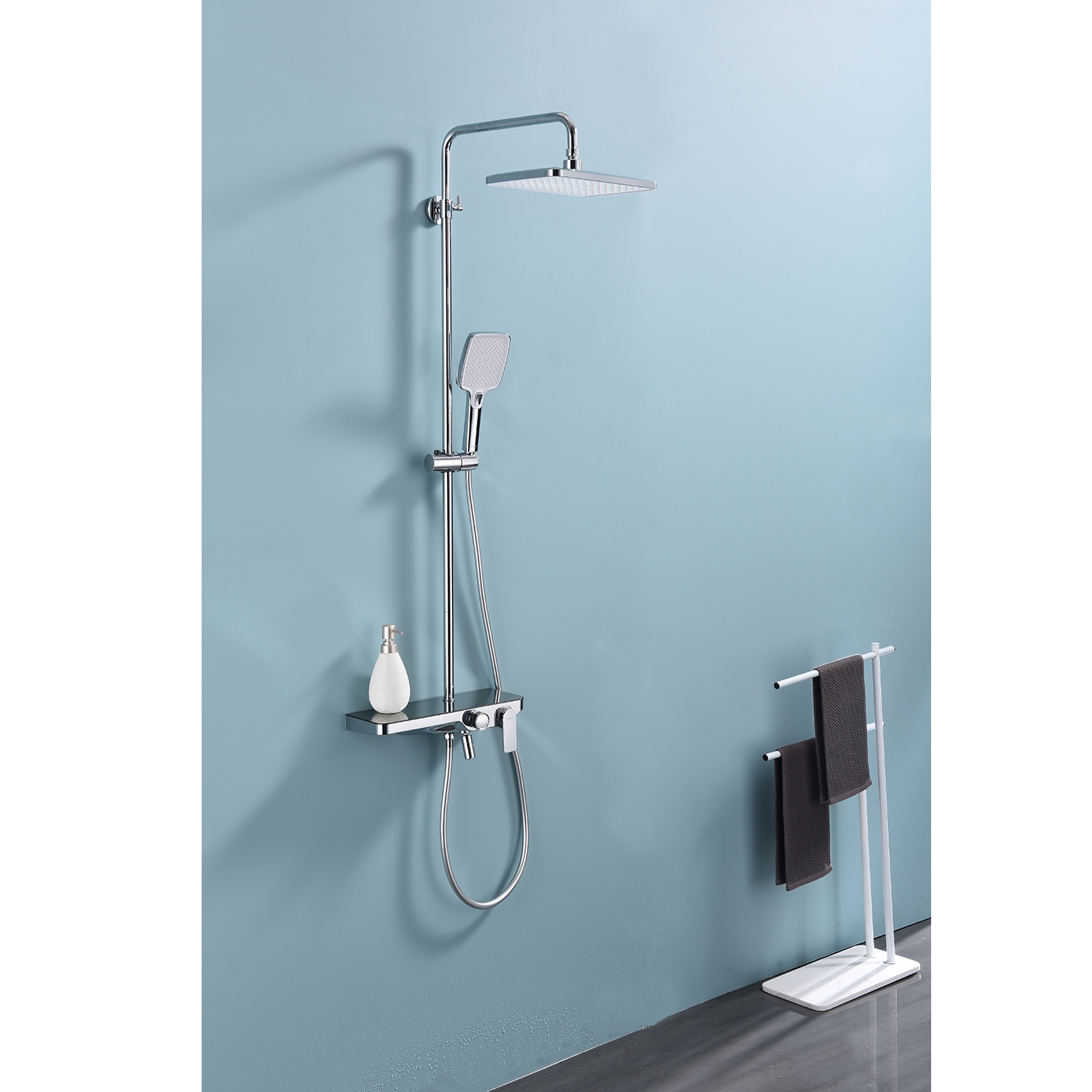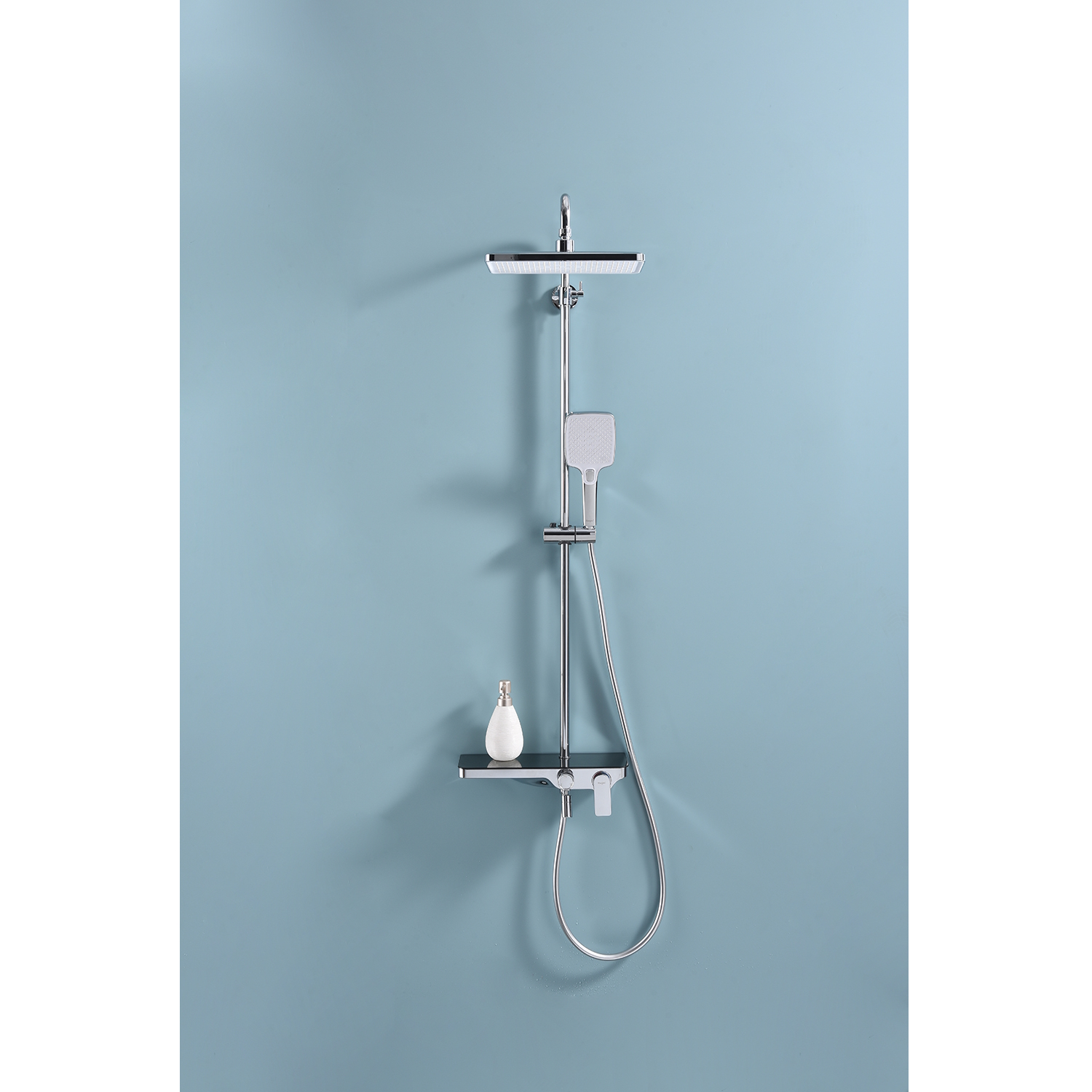 | Комплектация | Верхний душ (душевая штанга) с держателем лейки, ручной душ, смеситель, шланг |