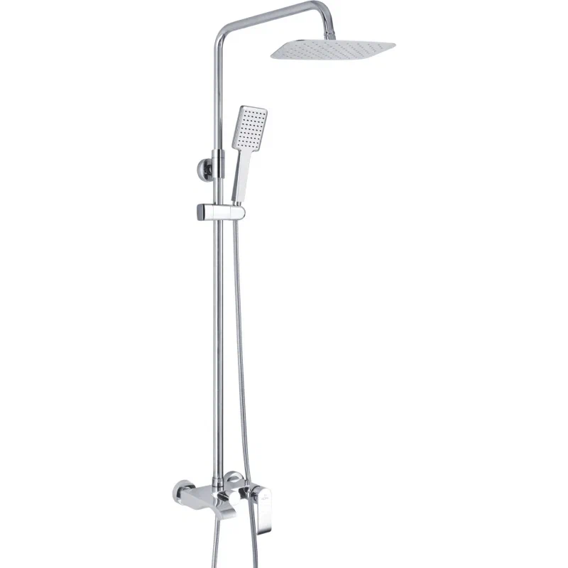 | Комплектация | смеситель, верхний душ, штанга с держателем душевой лейки, душевая лейка, шланг, эксцентрики |