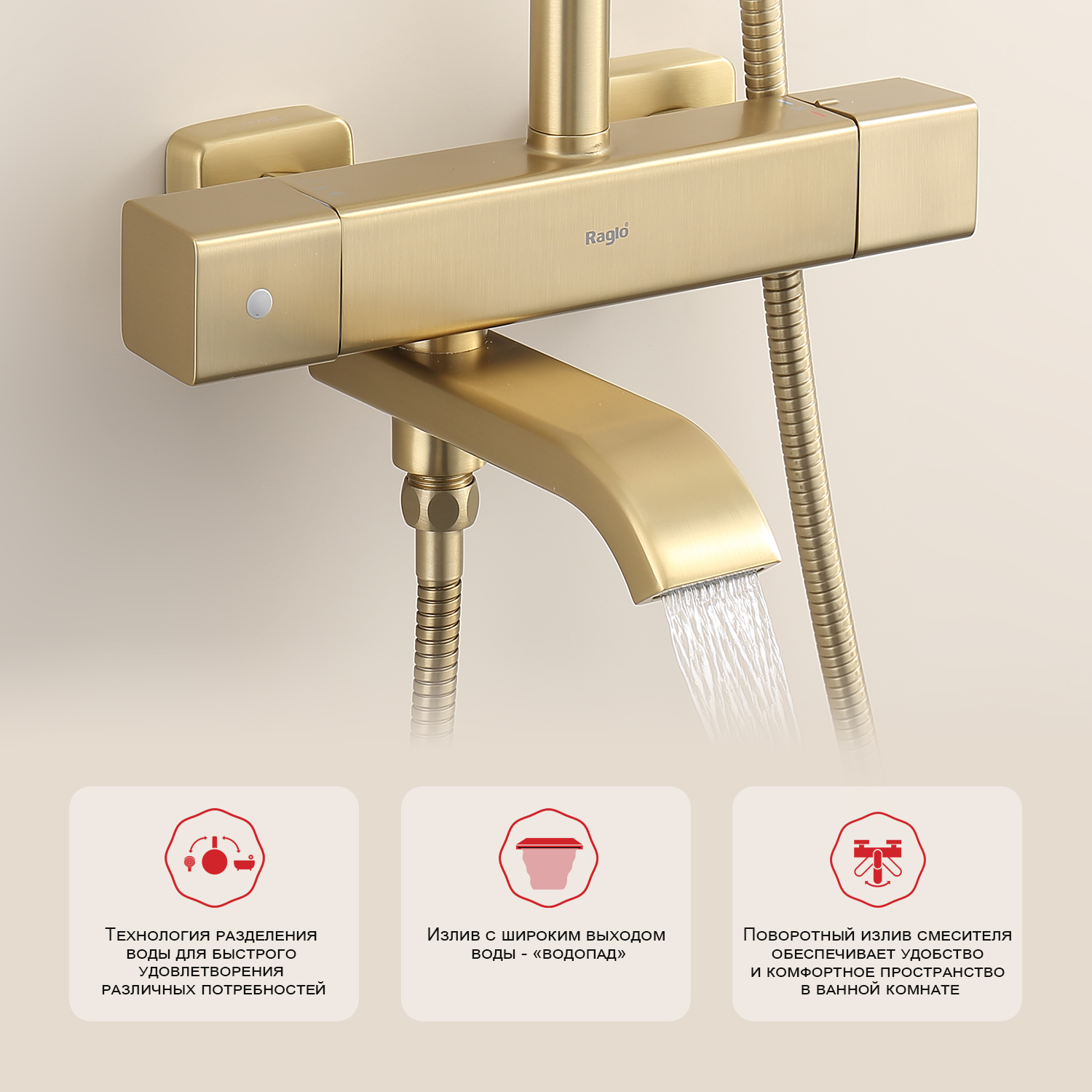 Закажите товар "Душевая система с термостатом Raglo R22.26.03, сатин золотой"
