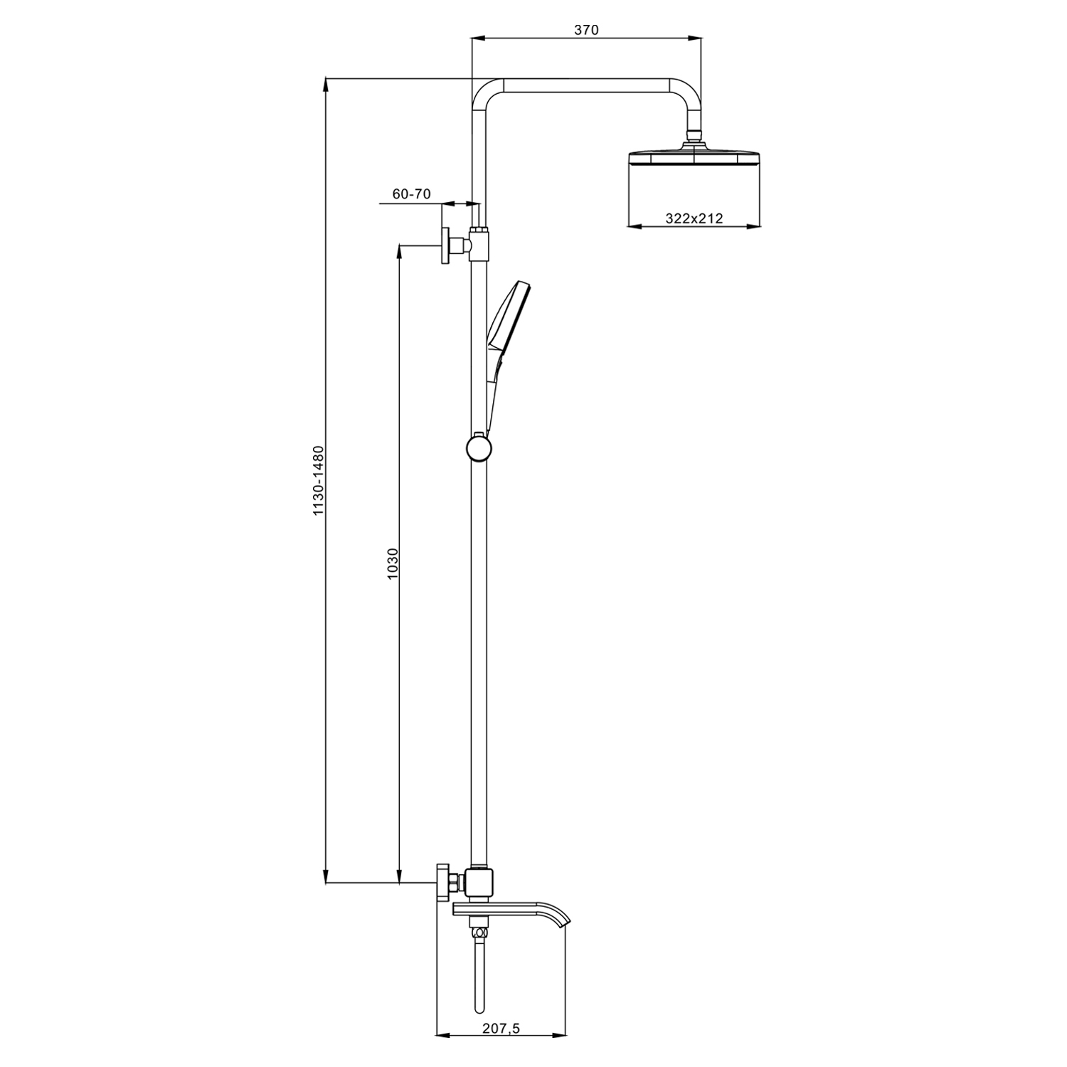 | Комплектация | Верхний душ (душевая штанга) с держателем лейки, ручной душ, смеситель, шланг |