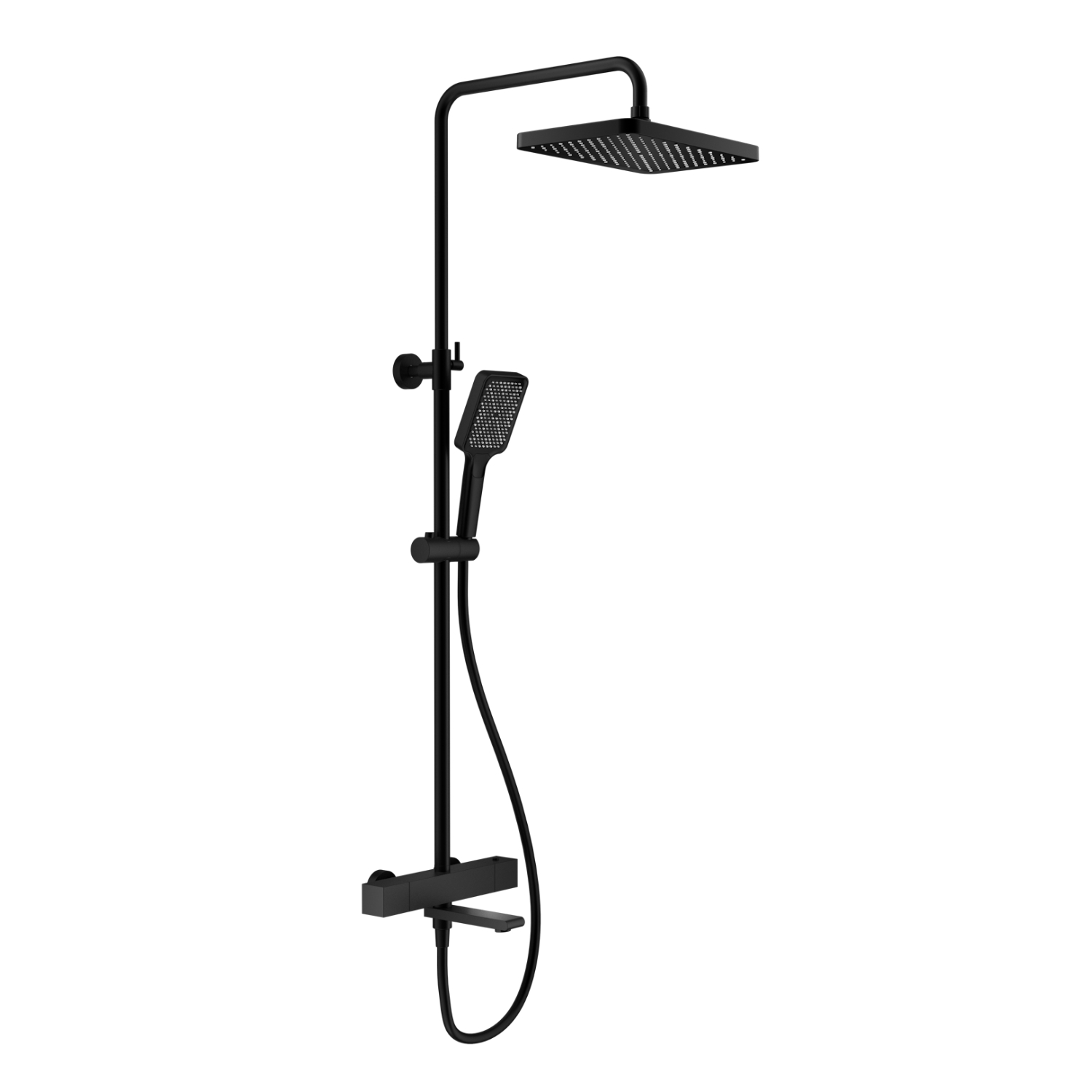 Душевая система с термостатом Splenka S224.26.06, черный. Управление: термостат. Механизм: термостатический картридж. Стандарт подводки: G 1/2. Размер верхнего душа (ШхД): 320х210 мм. Количество режимов струи ручного душа: 3. Регулируемая душевая штанга: 1160-1560 мм. Монтаж: на стену. Излив - функция переключения. Термостатический картридж - R502.551. Переключатель с керамическими пластинами (угол поворота – 180°) - R505.01. Переключатель в изливе - R501.527. Аэратор - S540.721.06.   Душевой шланг 1.5м - S403.15.06.