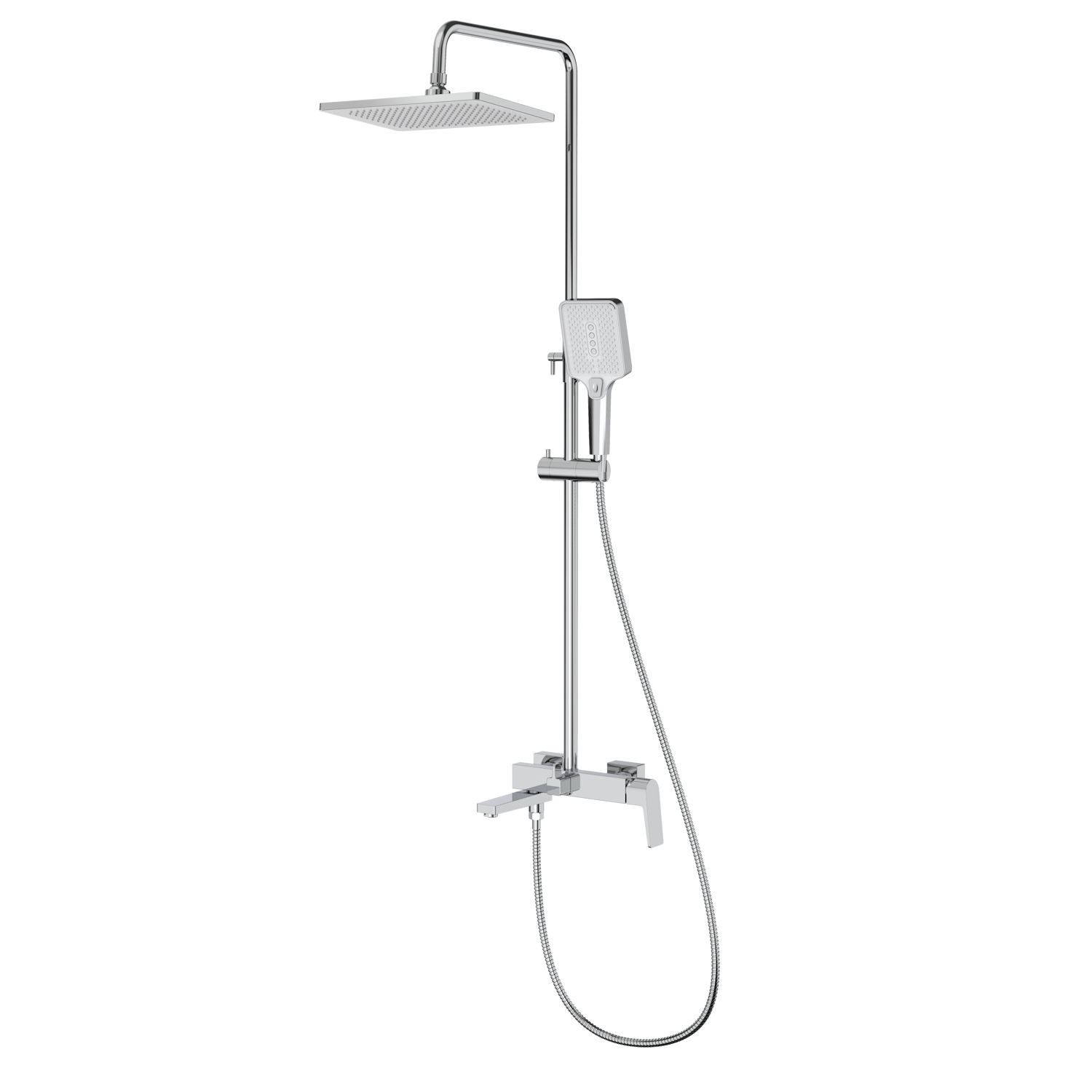 Душевая система Splenka S02.24. Цвет: хром. Материал: латунь. Управление: однорычажное. Механизм: керамический картридж. Излив: поворотный. Аэратор. Стандарт подводки: G 1/2. Форма верхнего душа: прямоугольная. Размер верхнего душа (ШхД): 320х210 мм. Количество режимов струи ручного душа: 3. Регулируемая душевая штанга: 625-1275 мм. Монтаж: на стену. Керамический картридж 35мм - S500.35. Переключатель с керамическими пластинами (угол поворота – 90°) - S501.526. Переключатель в изливе - S501.527. Излив - функция переключения. Аэратор - S540.721. Душевой шланг 1.5м - S402.15.