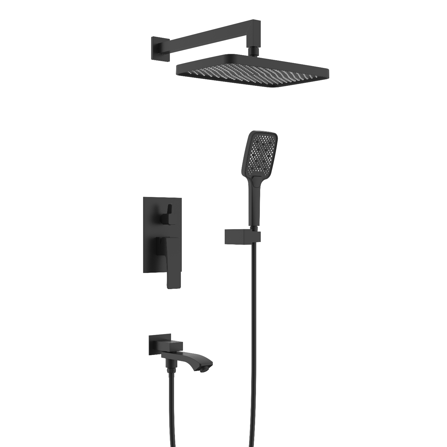 Душевая система встраиваемая Raglo R01.27.06, черный. Материал: латунь. Управление: однорычажное. Механизм: керамический картридж. Излив: поворотный. Аэратор. Размер верхнего душа (ШхД): 340х220 мм. Форма верхнего душа: прямоугольная. Форма ручного душа: прямоугольная. Количество режимов струи ручного душа: 3. Стандарт подводки: G 1/2.  Монтаж: встраиваемый. Излив - функция переключения. Керамический картридж 35 мм - R500.35.01. Переключатель с керамическими пластинами (угол поворота – 90°) - R501.526. Переключатель в изливе -  R501.527. Аэратор -  R540.02.06. Душевой шланг 1.5м -  R403.15.06.