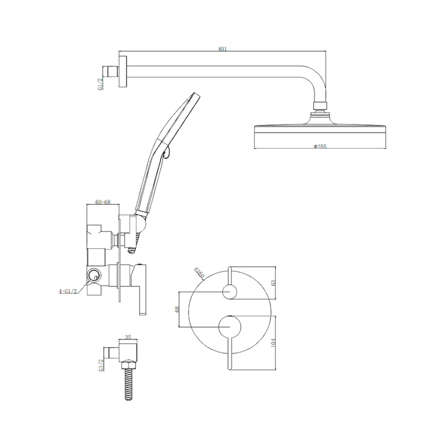 Душевая система встраиваемая Splenka S222.27.06, черный. Материал: нержавеющая сталь. Управление: однорычажное. Механизм: керамический картридж. Стандарт подводки: G 1/2. Форма верхнего душа: круглая. Диаметр верхнего душа: 255 мм. Длина кронштейна: 401 мм. Количество режимов струи ручного душа: 3. Монтаж: встраиваемый. Излив - функция переключения. Керамический картридж 35мм - S500.35. Переключатель с керамическими пластинами (угол поворота – 180°) - S501.526. Переключатель в изливе - S501.527. Аэратор - S540.721.06. Душевой шланг 1.5м - S403.15.06.