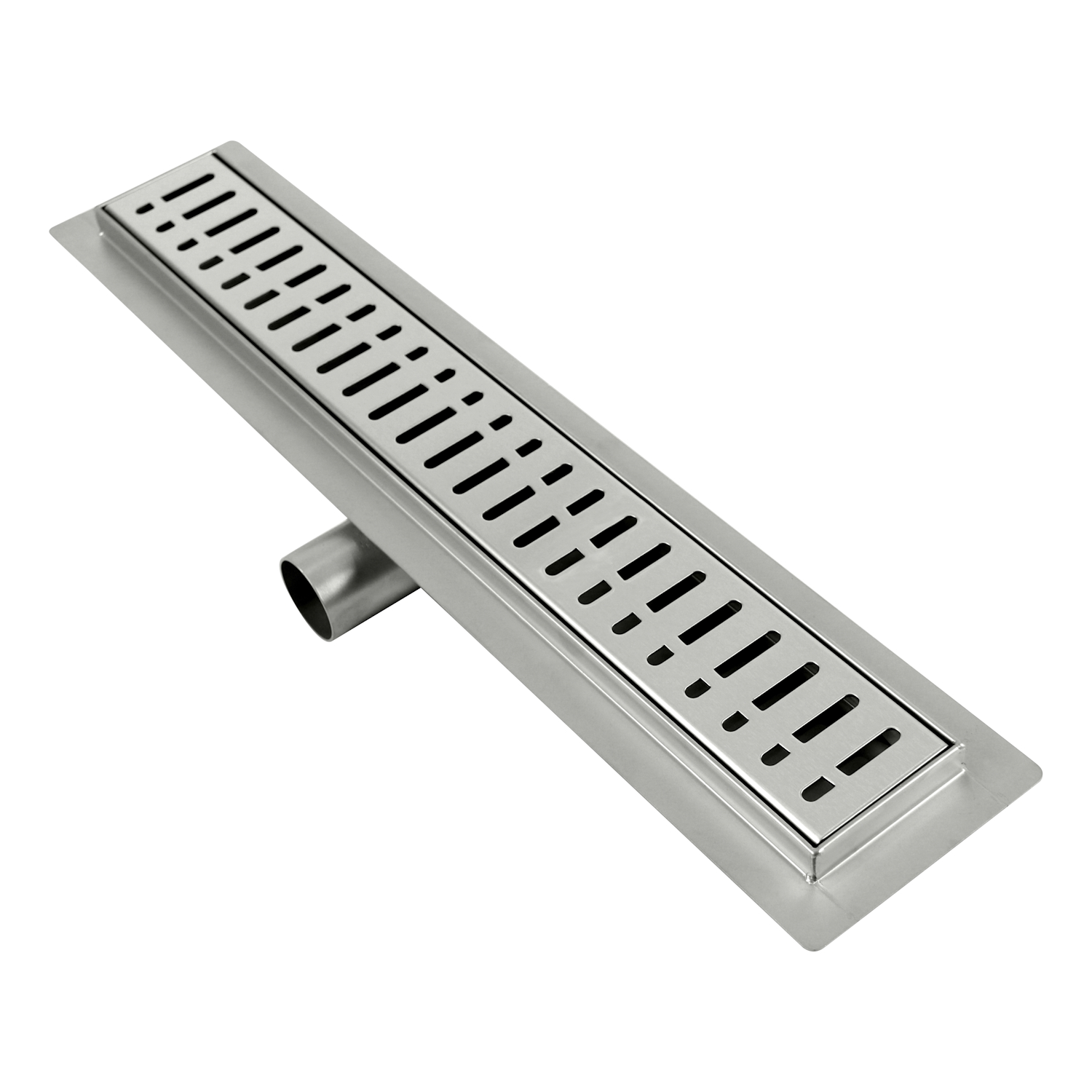| Комплектация | Водоотводящий жёлоб из нержавеющей стали, декоративная панель, заглушка, монтажная поворотная колена-сифон D50 с боковым выходом, комплект регулируемых опор, уловитель волос и мусора, сервисный ключ. |