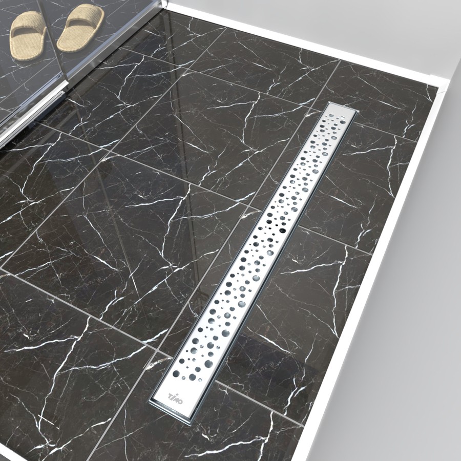 | Комплектация | водоотводящий желоб из нержавеющей стали; декоративная панель "lines"; заглушка монтажная; поворотный сифон DN50, выход вбок; комплект регулируемых опор; стакан с мембраной; улавливатель волос и мусора; гидроизоляционная лента; сервисный ключ |