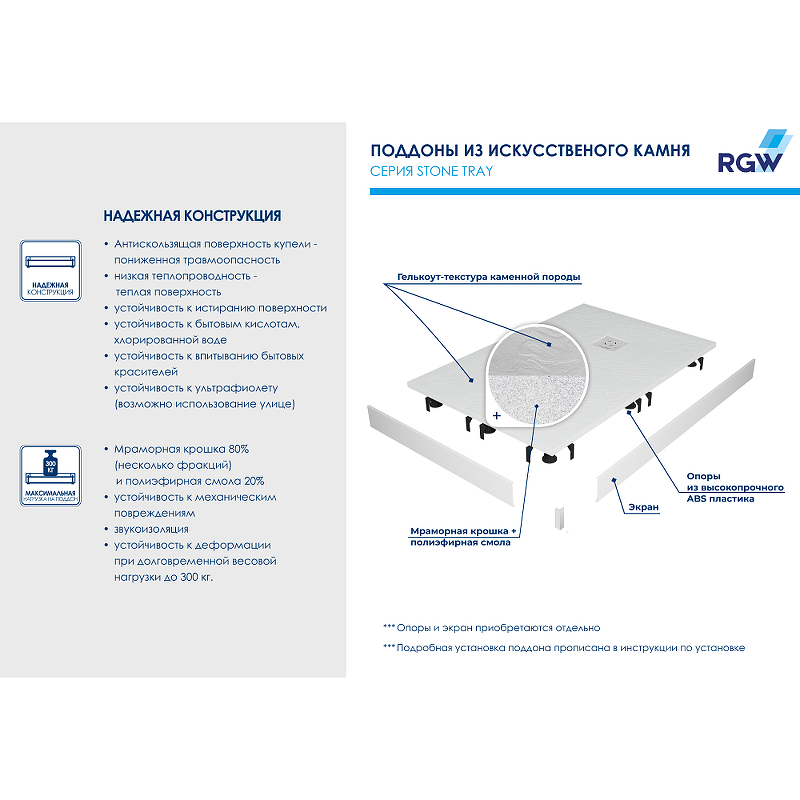 Закажите товар "Душевой поддон из искусственного камня RGW Stone Tray ST-W 160×70 16152716-01 Белый"