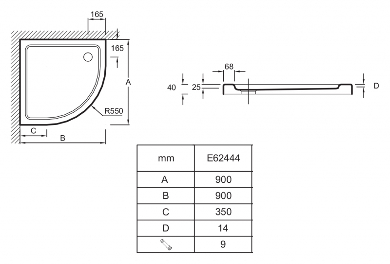 Закажите товар "Душевой поддон из материала Flight Jacob Delafon Flight 90×90 радиальный Белый"