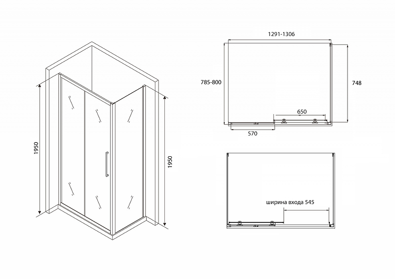 Душевой уголок Abber Schwarzer Diamant 130х80 AG30130BH-S80B.