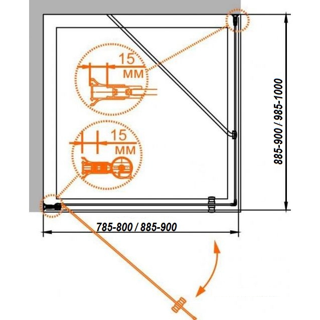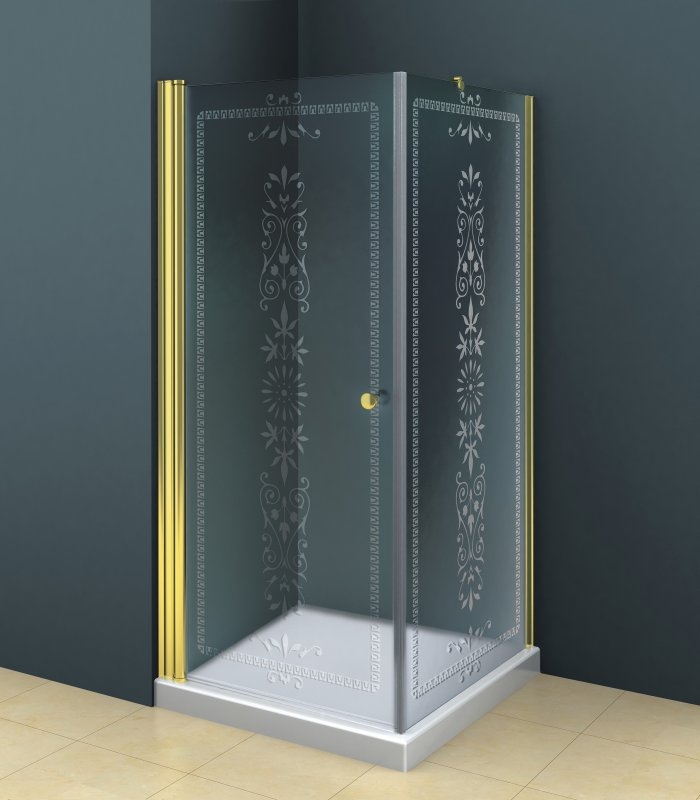 Закажите товар "Душевой уголок Cezares ROYAL PALACE-A-AH-1-90/100-CP-G профиль Золото стекло прозрачное с матовым узором"